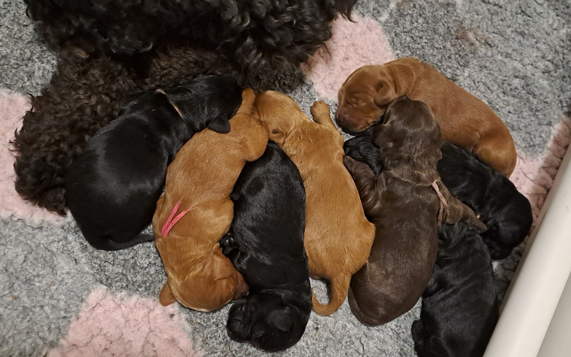 Lunan äidin linja on meidän Amber Lolan vanhoja linjoja ja Lunan isä on meidän musta phantom värinen Hollannin tuonti Zaansedoodles Zeski.